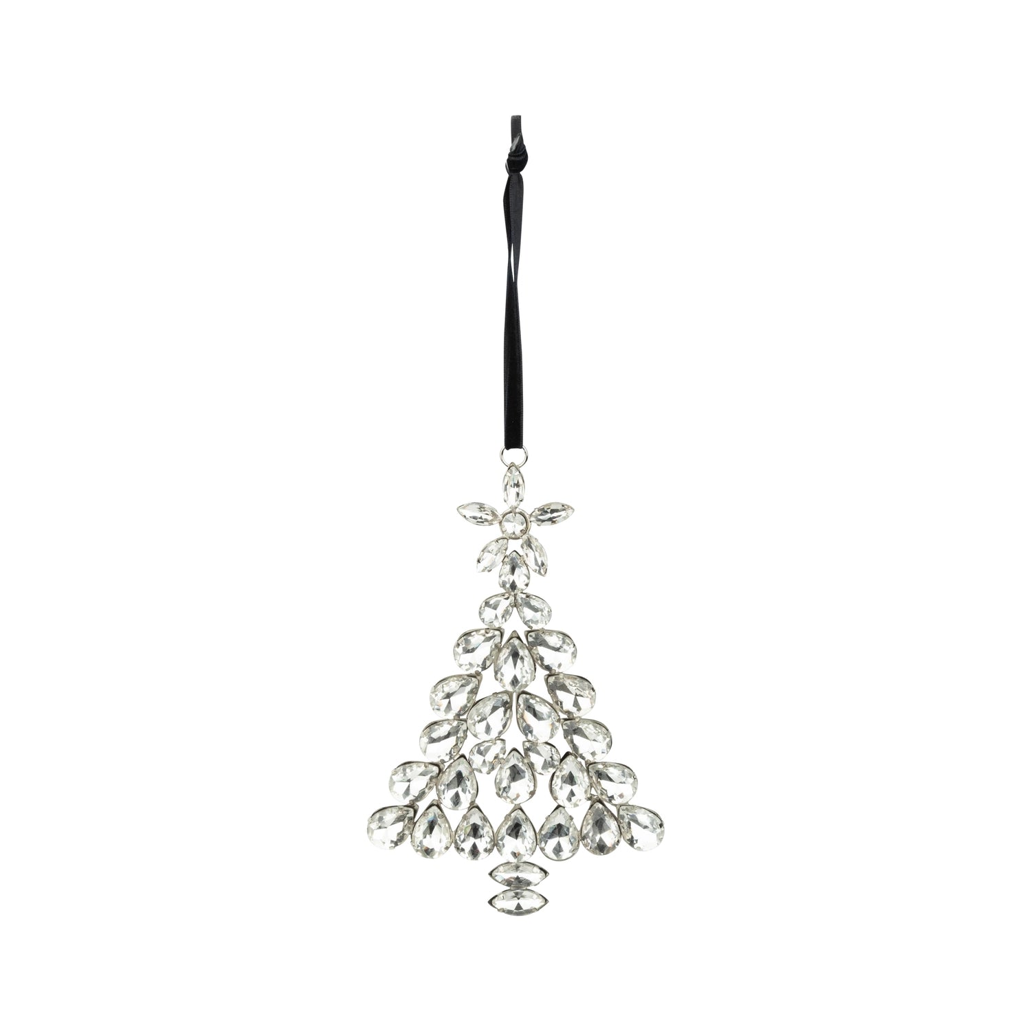 Clear glass jewel on silver frame tree ornament, 6 in. Please note that due to the nature of the materials,slight color variations may occur between individual items and compared to images. These differences are minimal and do not affect the overall appearance. The approximate dimensions are: 6x4xin.