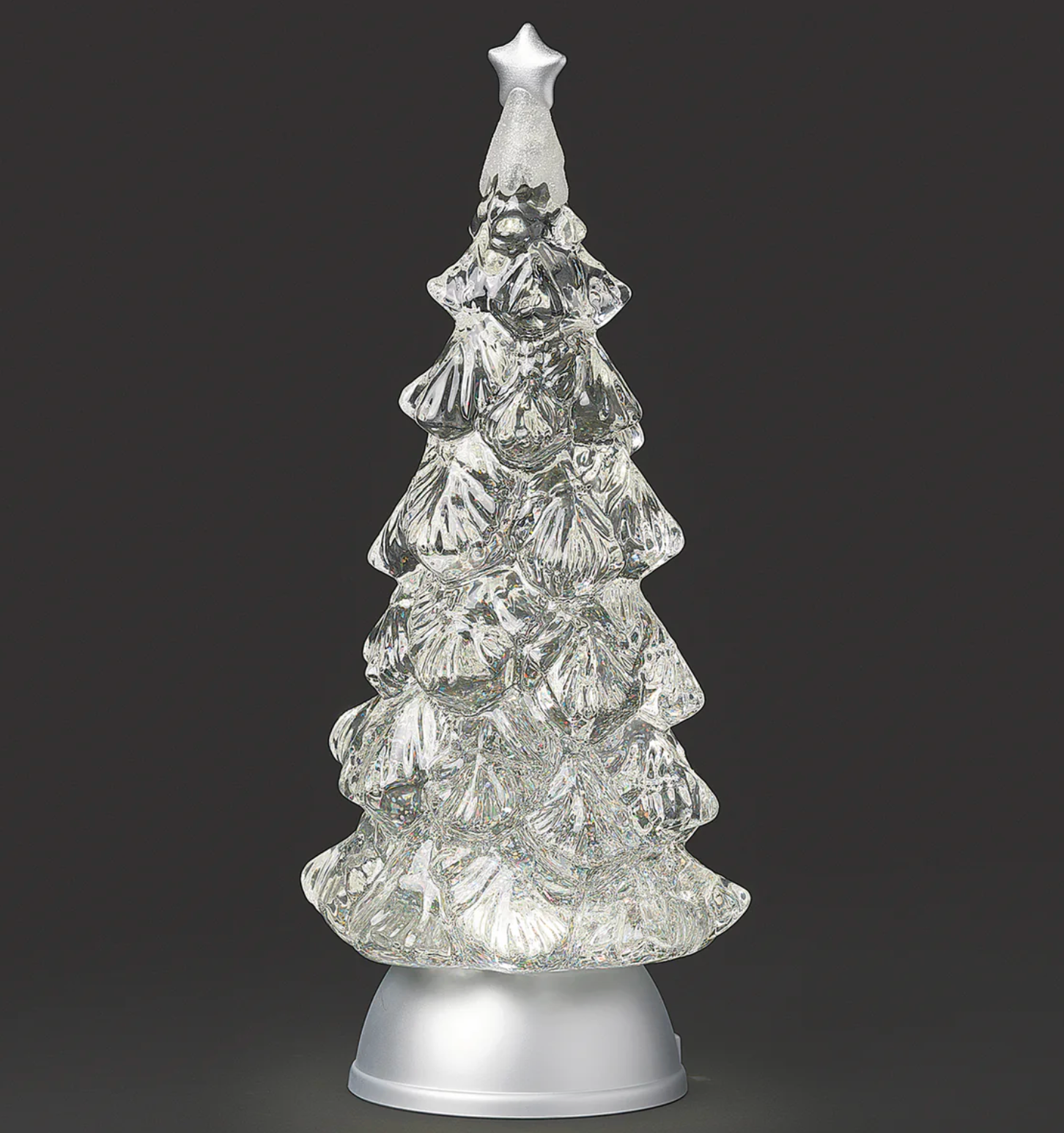 Add sparkle to your space with this lighted swirl tree featuring a sleek silver base. The swirling glitter and internal lighting bring festive charm and elegance to your seasonal decor.