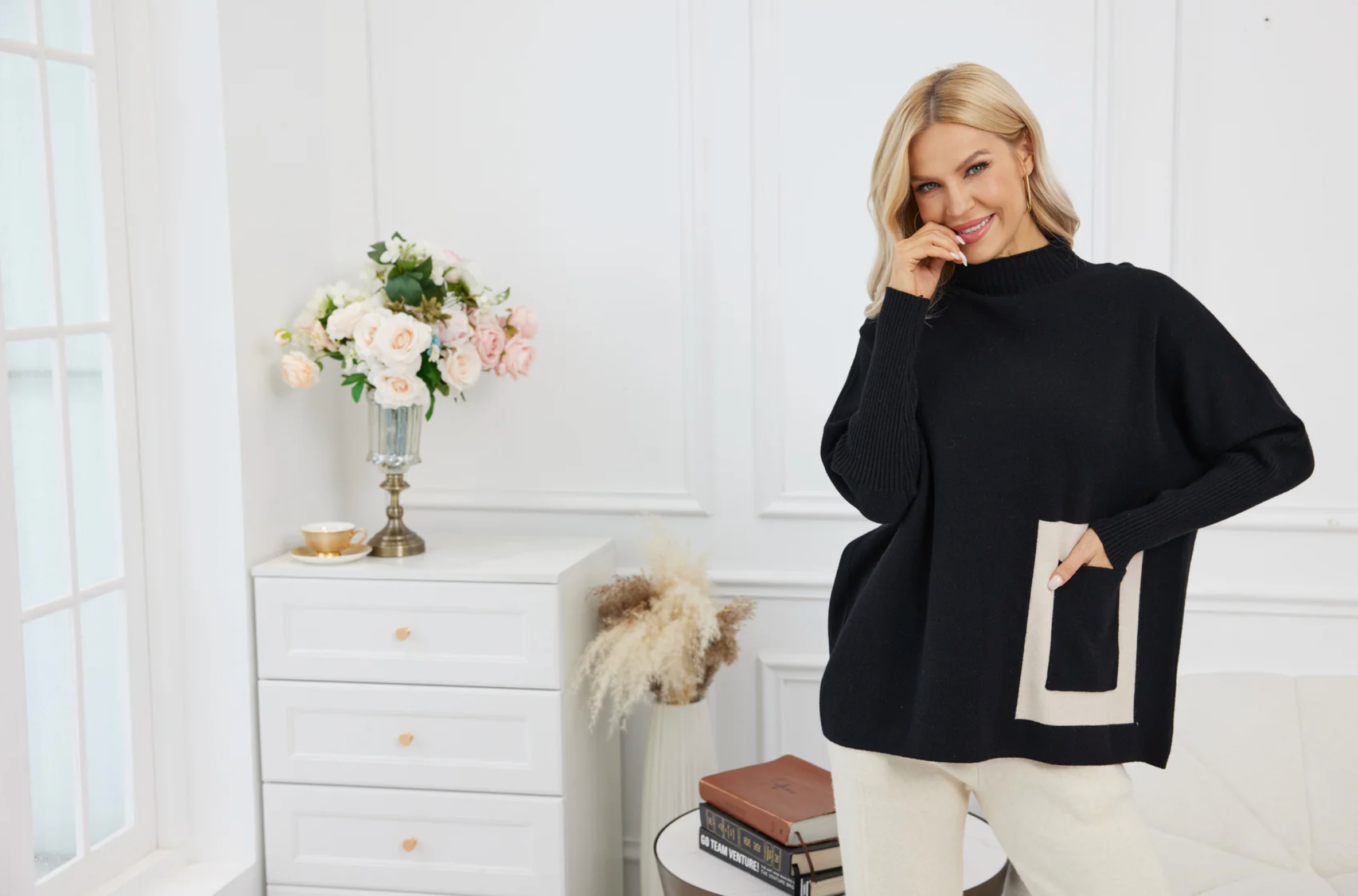 Step into bold simplicity with Soleil's Box Sweater. This modern, chic piece makes a statement with its clean lines and confident silhouette, perfect for adding a playful edge to any outfit. Embrace effortless style that stands out without trying too hard.