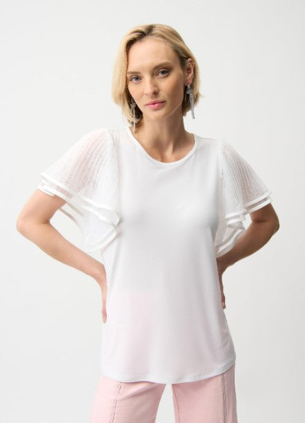 JOSEPH RIBKOFF TOP WITH PLEATED FLUTTER SLEEVE